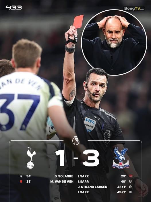 🐔 THẢM BẠI TRƯỚC PALACE, TOTTENHAM CHỈ HƠN NHÓM XUỐNG HẠNG 1 ĐIỂM Tottenham với 29 điểm/29 vòng đấ