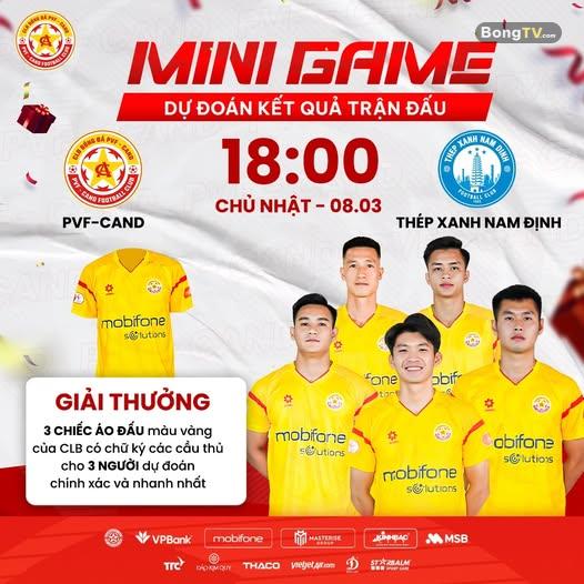 🎯 MINI GAME: DỰ ĐOÁN KẾT QUẢ TRẬN ĐẤU PVF CÔNG AN NHÂN DÂN – THÉP XANH NAM ĐỊNH Cuối tuần này, PVF