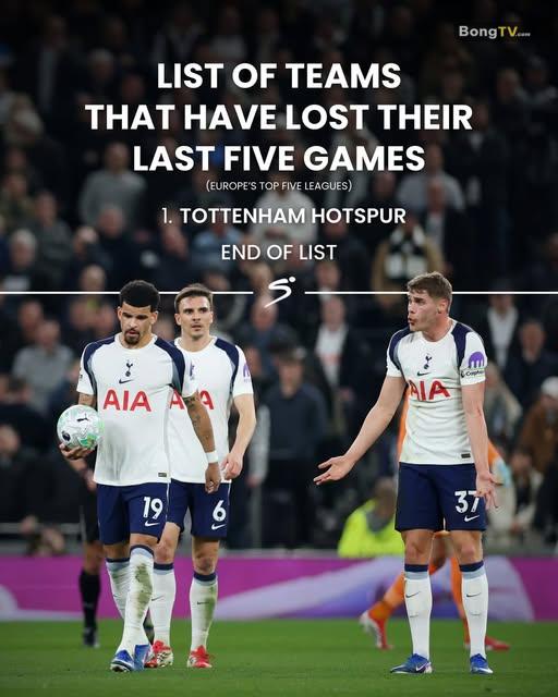 🐔 THỐNG KÊ ĐIÊN RỒ ❌ Tottenham là đội bóng duy nhất ở Top 5 giải VĐQG hàng đầu châu Âu toàn thua 5